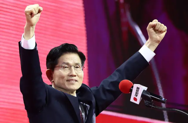 キム・ムンス氏は5月3日、国民の力の党内選挙(予備選)を通じて正式に大統領候補に選出されました。しかしその後、党執行部は無所属で出馬を表明していたハン・ドクス前大統領代行を擁立し、候補の一本化を推進。キム氏に候補辞退を求める動きを強めました。